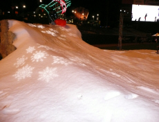 Snow and included sledding hills and slopes, a huge ice skating rink